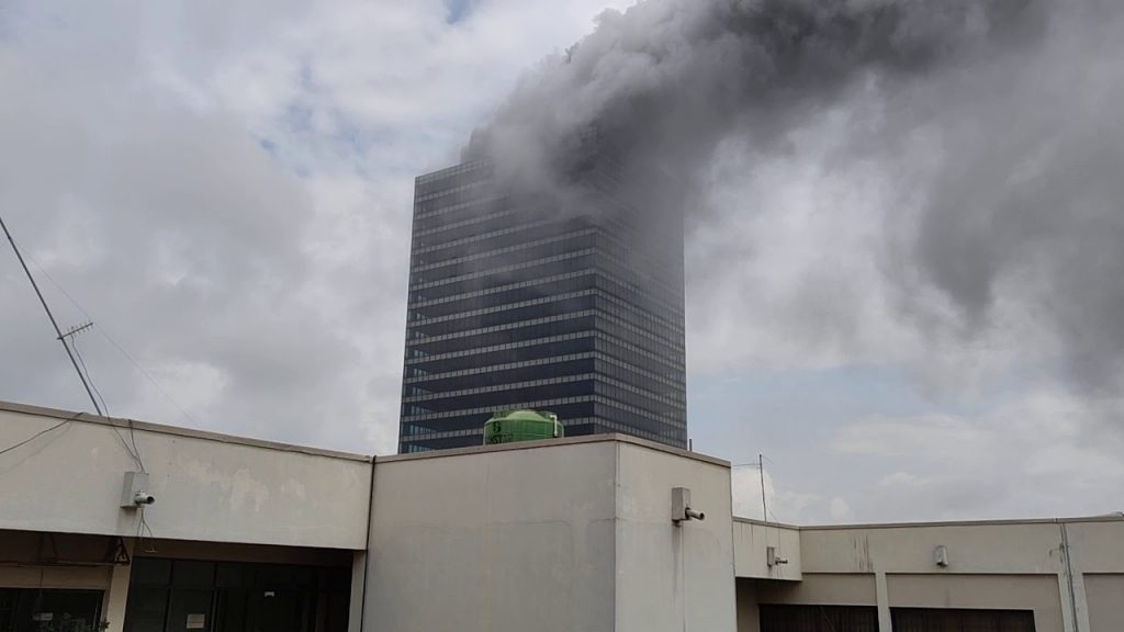 An eyewitness said the fire started from the top of the skyscraper which dots the skyline of Central Business District, Abuja.
