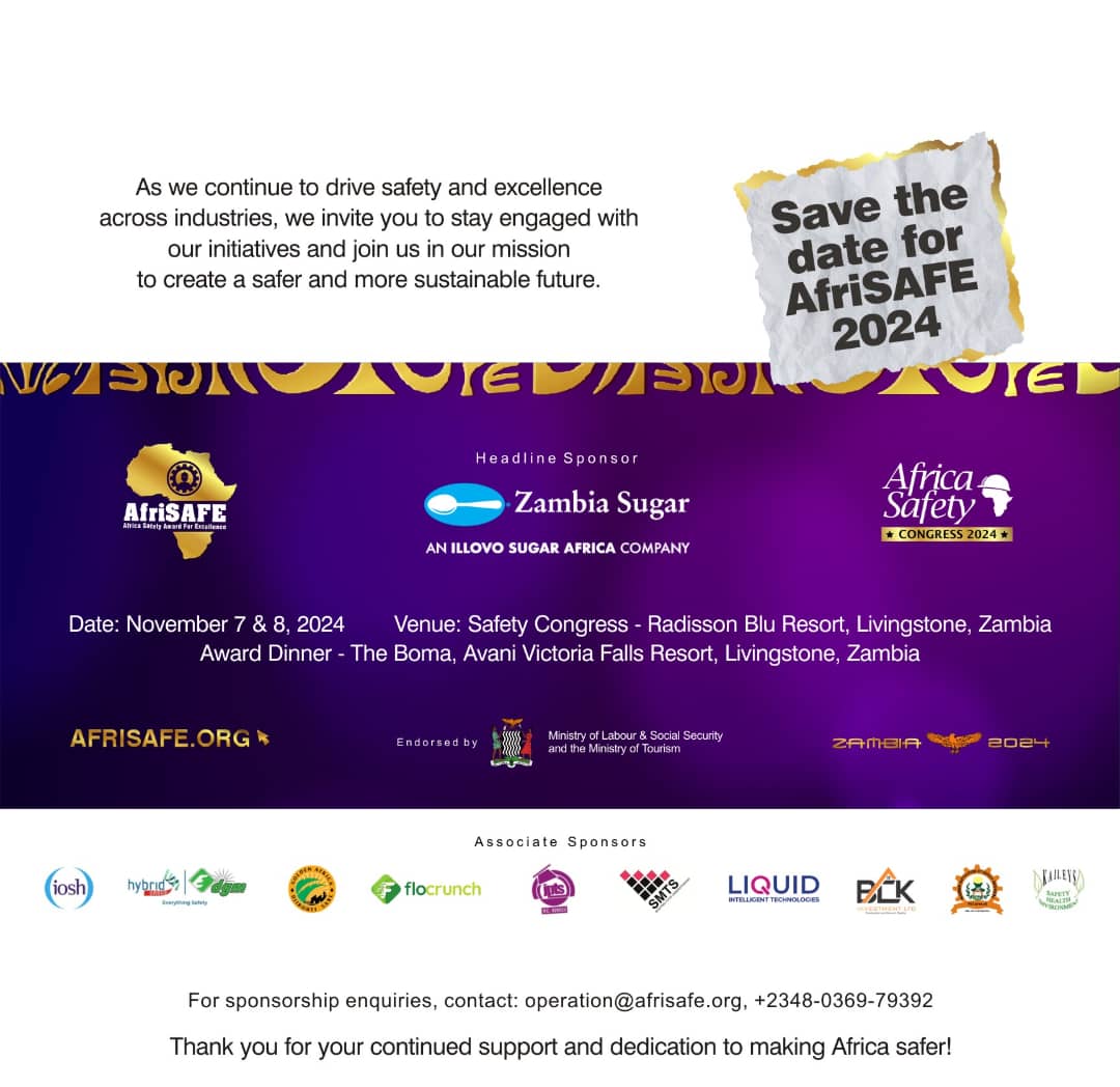 The AfriSAFE 2024 Congress and Award Ceremony, headlined by Zambia Sugar and endorsed by the Zambia Ministry of Labour and Social Security and the Zambia Ministry of Tourism, has attracted 11,428 nominees this year.