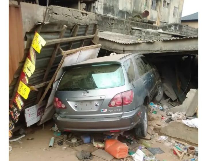 An unidetified driver has rammed into a kiosk in Isolo area of Lagos State when the driver of a Lexus jeep with number plates LSD 356GU, lost control and the car rammed into a kiosk, killing two children of the same parents, and injuring another.