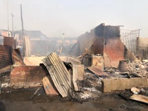 A market hub at Council Bus-Stop in Lagos State’s Idimu area was struck by a devastating gas explosion on Saturday, leading to the destruction of seven lock-up shops and multiple vehicles nearby. The incident originated from a gas cylinder leak in one of the shops and quickly escalated into a destructive inferno.
