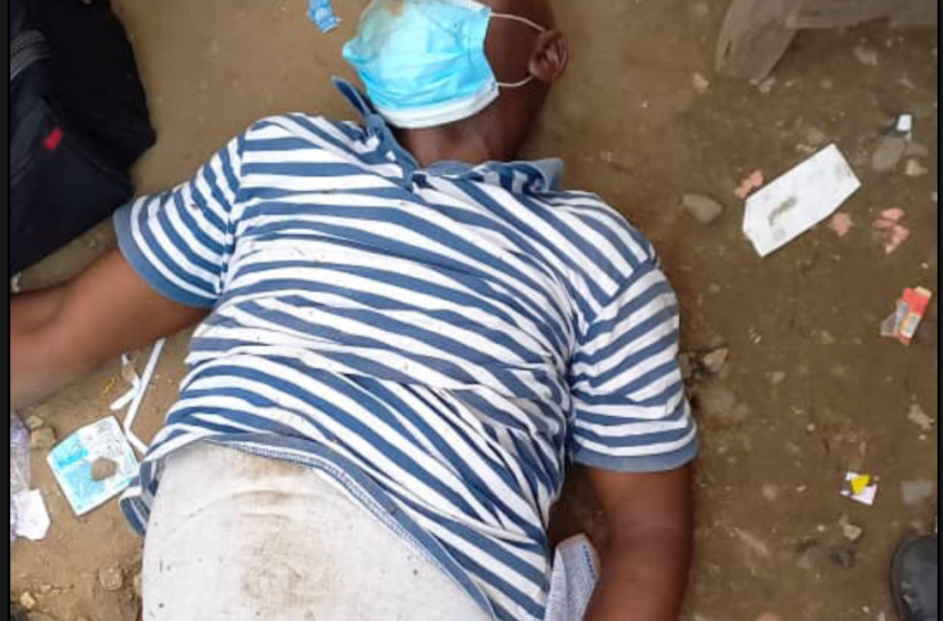 The man whose staff identity card revealed his name as, a Chief driver and mechanic with Lagos State Government wanted to buy something from a woman in Oshodi and fell uncontrollably, during which he hit his head on the ground, and died instantly according to officer from LASTMA department who witnessed the sad incident.