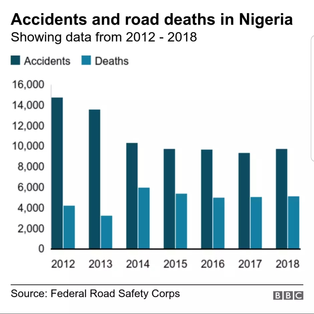 According to the Federal Road Safety Corps, there was a slight dip in 2013, but since then between 5,000 and 6,000 people have been killed every year.