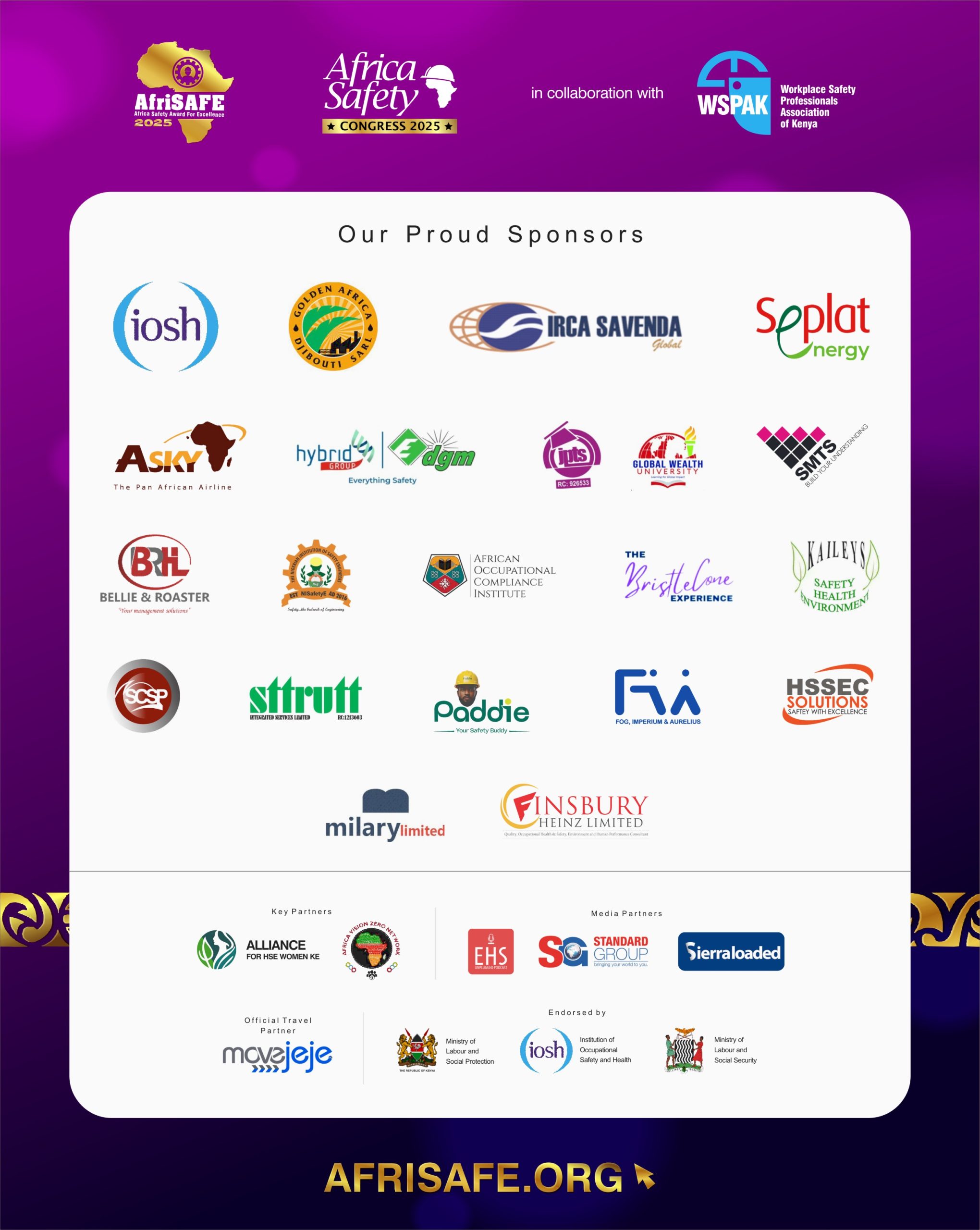 AfriSAFE 2025 is scheduled for November 13-14 in Mombasa, featuring the Africa Safety Congress hosted in collaboration with the Workplace Safety Professionals Association of Kenya, and a dazzling AfriSAFE Award Ceremony honouring individuals and organizations leading the charge for workplace safety.
