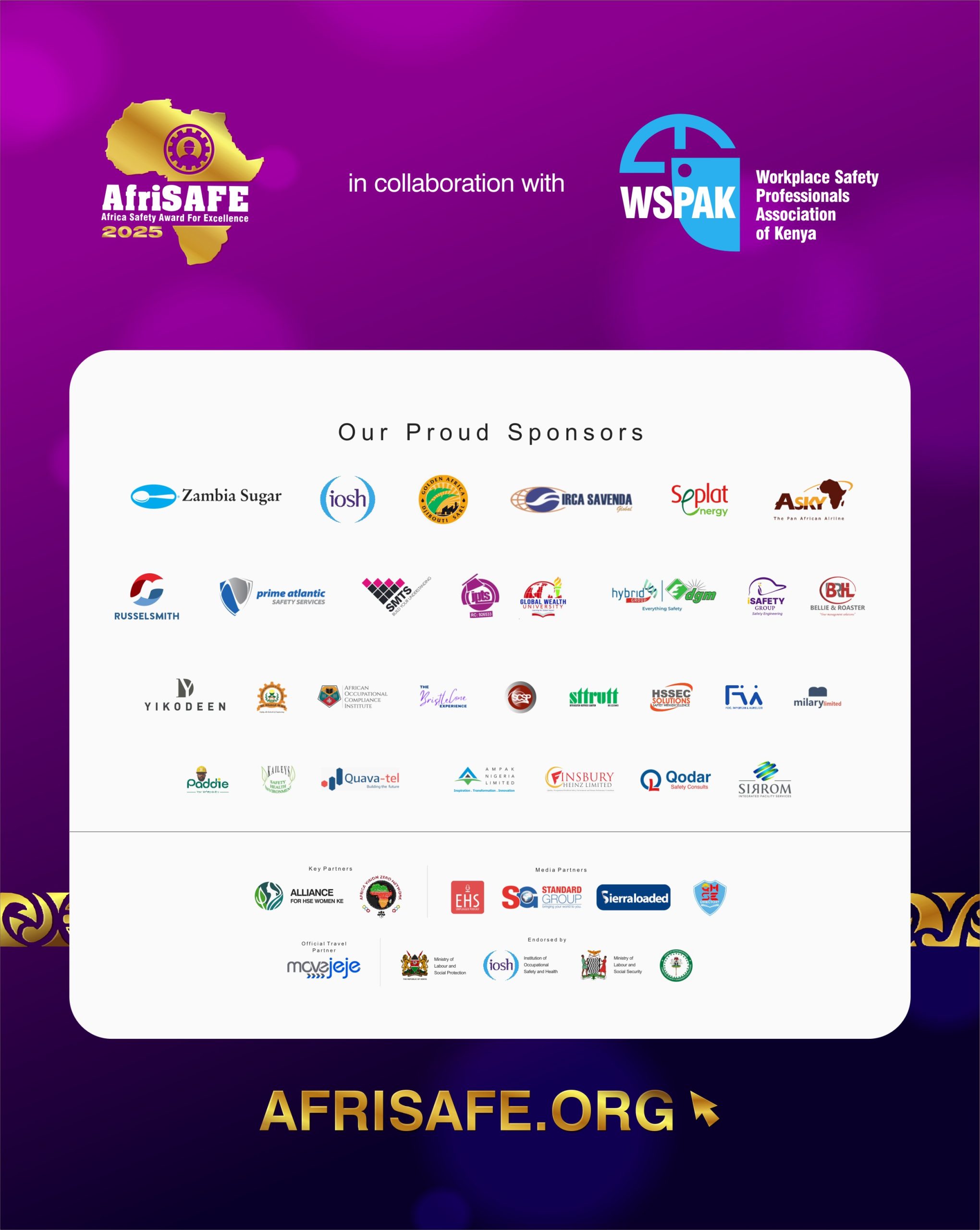 AfriSAFE 2025 is scheduled for November 13-14 in Mombasa, Kenya, featuring the Africa Safety Congress hosted in collaboration with the Workplace Safety Professionals Association of Kenya, and a dazzling AfriSAFE Award Ceremony honouring individuals and organizations leading the charge for workplace safety.